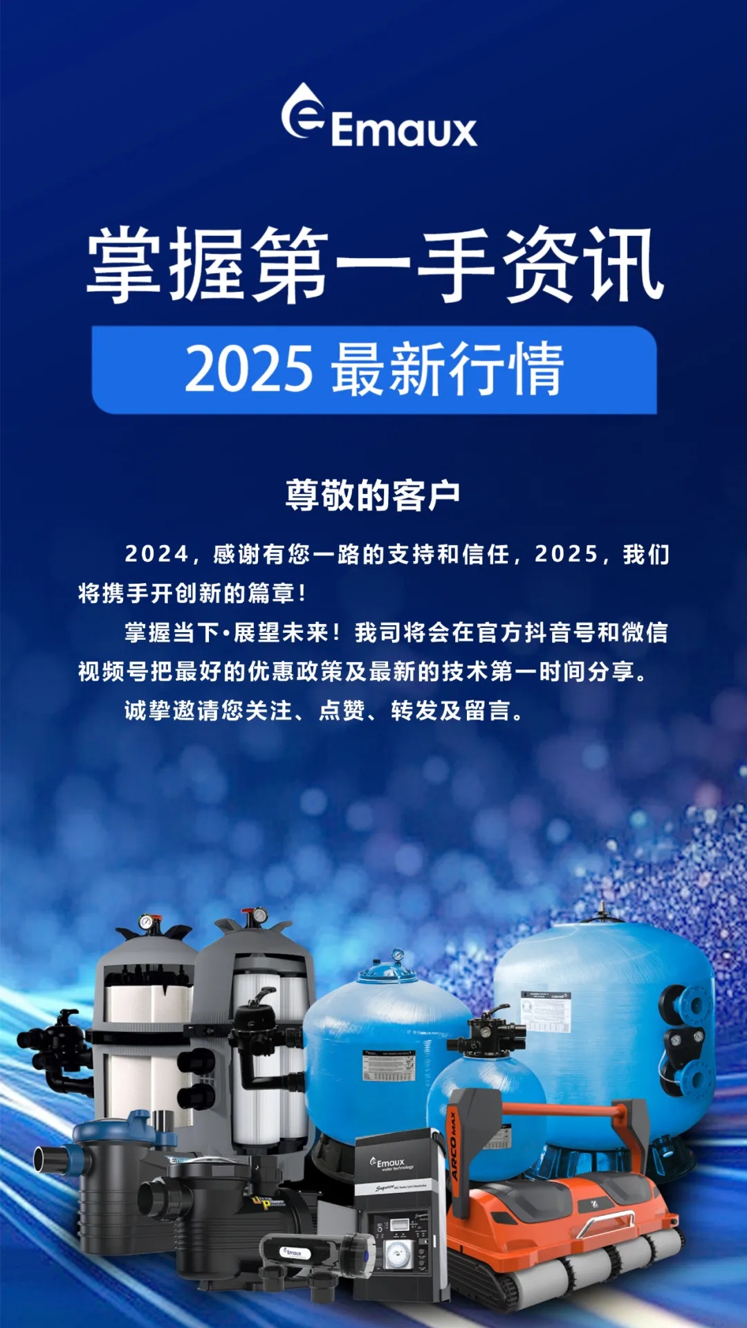 鞭炮聲聲辭舊歲,金蛇納福迎新春,意萬仕(中山)泳池設(shè)備有限公司全體同仁給您拜年了恭祝全球華人和國際友人新春快樂、闔家幸福。衷心感謝社會各界人士、供應商、經(jīng)銷商及新老客...